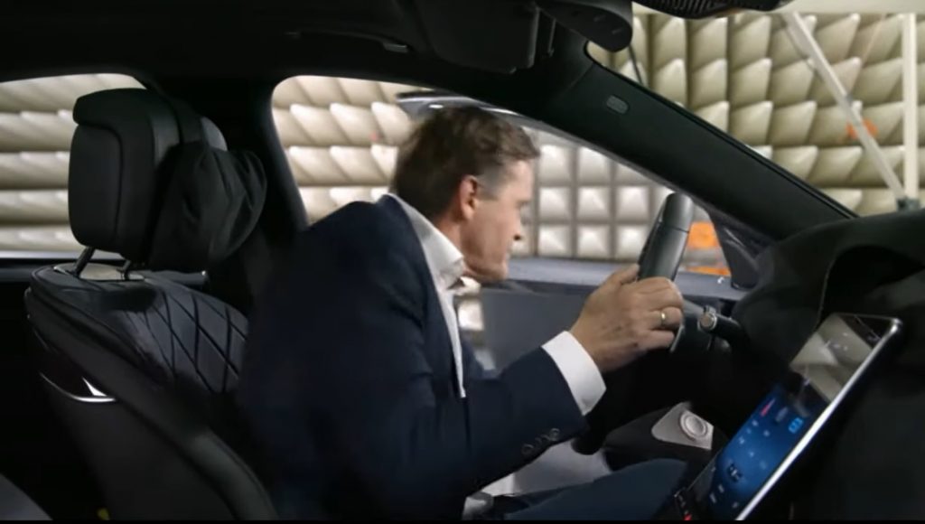 Tan pronto como Schafer sube a la Clase S, vemos la visión lateral completa. La parte mucho más destacable del automóvil es la enorme pantalla central sin dependencia. Pudimos atisbar la gran brecha tras el volante, que también es compatible con la utilidad de realidad aumentada del dispositivo. Entonces, la demostración continuó demostrando su funcionalidad de visualización de adelante, que es muy afín a los vehículos pertrechados con el sistema de información y diversión MBUX introducido en el sedán Clase A 2018.