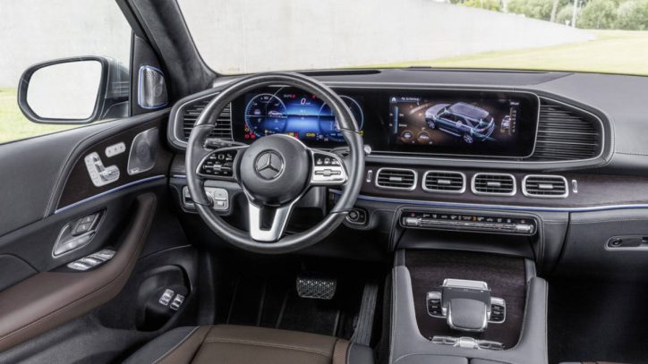 La cabina se controla a través de la llamada experiencia de usuario de Mercedes Benz GLE 2020 (MBUX). El sistema tiene cerca de 40 funcionalidades nuevas, incluyendo el control por movimientos para información y diversión. Hay una pantalla de visualización de adelante configurable en el panel de instrumentos y dos pantallas de ancho ajustado de 12,3 pulgadas en el parabrisas. Una pantalla muestra la misma información que la pantalla de visualización frontal, mientras que la pantalla del tablero central exhibe las funciones de navegación, infoentretenimiento y taburete.