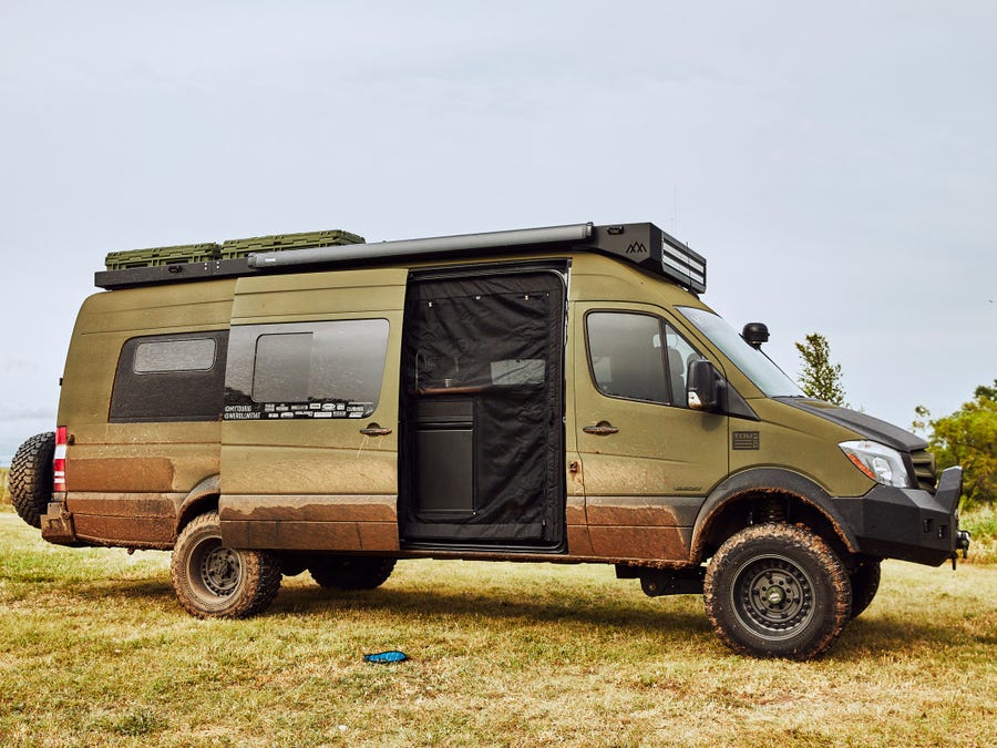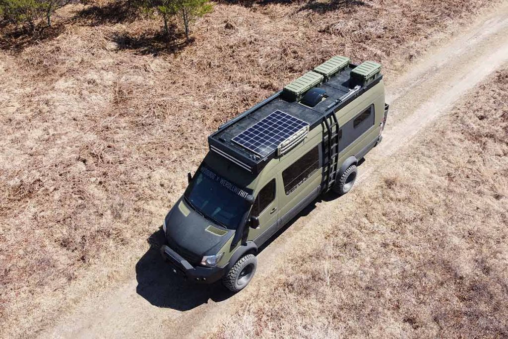 Según Tourig, el vehículo recreativo fuera de la red se apoya en el Mercedes-Benz Sprinter 2016. Este camión de 2 ruedas se ha convertido en una autocaravana 4 × 4, pertrechada con un eje recio, una caja de transferencia de tres a uno. un neumático de calidad inferior y todo terreno conveniente para empleo todoterreno. El automóvil que se muestra aquí está actualmente habitado por una pareja casada y sus dos perros.