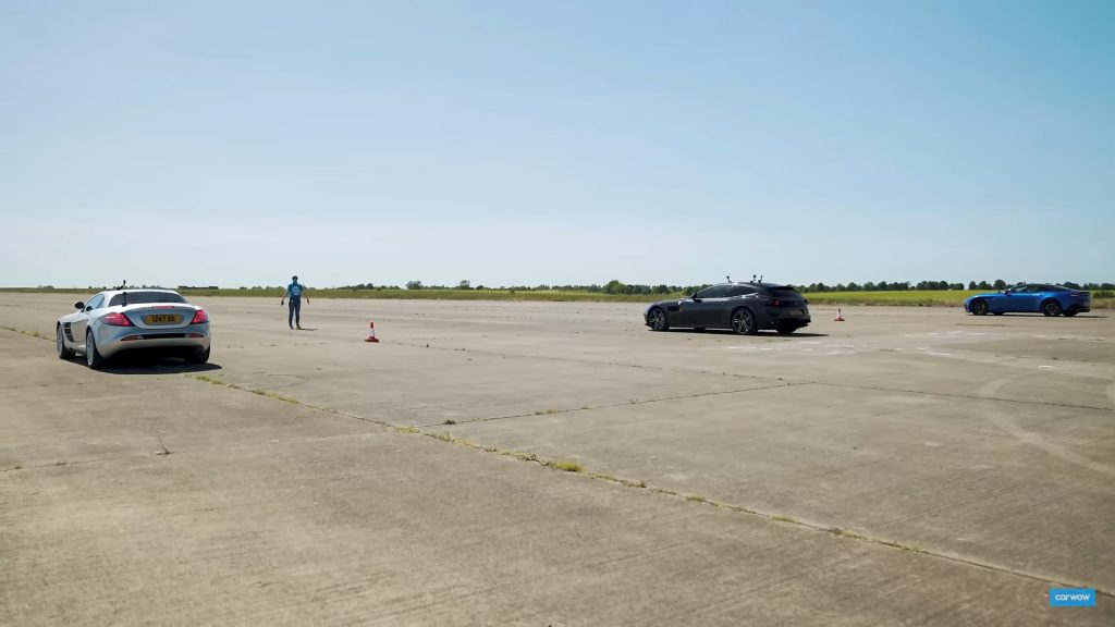Sobre el papel, Aston Martin DBS es un posible candidato a ganar el juego. El motor V12 biturbo de 5.2 litros de Superleggera produce 715 caballos de fuerza y 664 libras-pie de torque, el mucho más poderoso de su clase. Todo lo mencionado se distribuye a las ruedas traseras por medio de un convertidor automático de ocho velocidades. Con un peso total de solo 1700 kg, asimismo es el más ligero, pero no tiene control de lanzamiento.